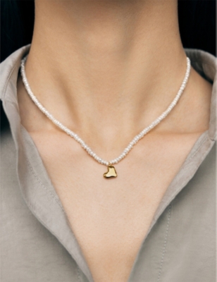 Heart Mini 18ct Yellow Gold-Plated Vermeil Sterling-Silver Pearl Necklace- Price:ÂŁ150.00