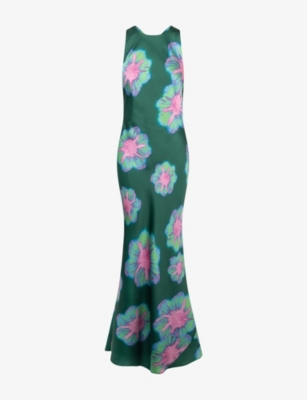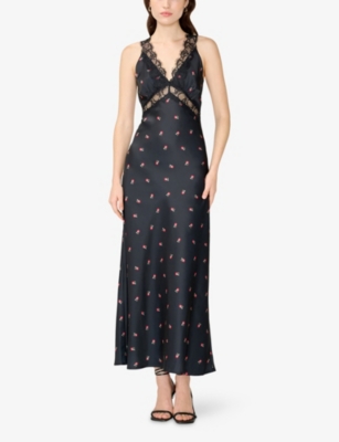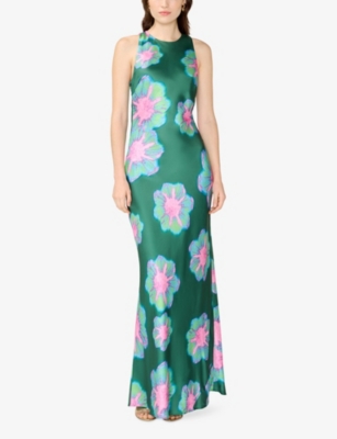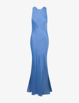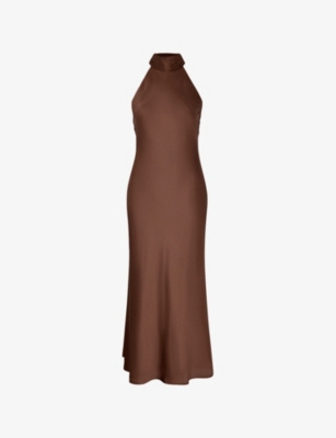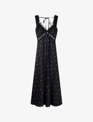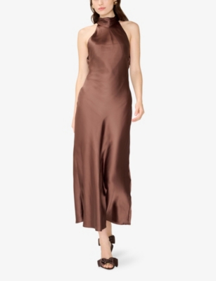 Maggy V-Neck Cut-Out Sleeveless Satin Midi Dress