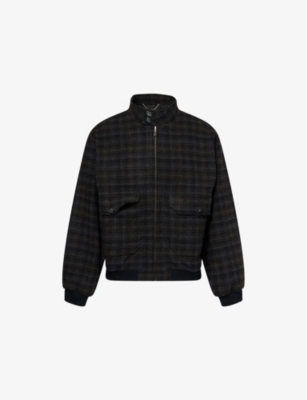 Check-Pattern Mock-Neck Blouson Wool Jacket