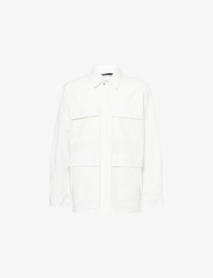 Pocket-Front Loose Long-Sleeve Cotton-Blend Shirt