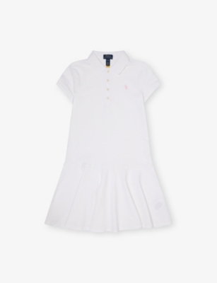 Girls' Pleated Polo-Collar Stretch-Cotton Piqué Dress