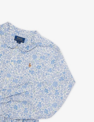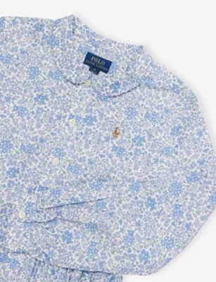Baby Girl Floral-Print Embroidered-Logo Cotton Day Dress
