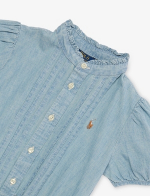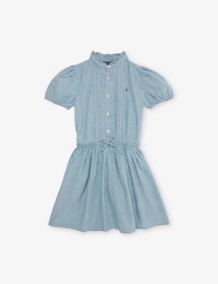 Girls' Pleated Polo-Collar Stretch-Cotton Piqué Dress