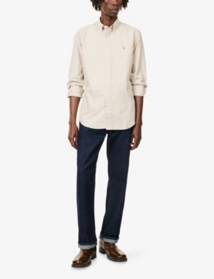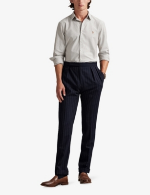 Long-sleeved logo-embroidered slim-fit stretch cotton-poplin shirt- Price:£135.00