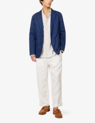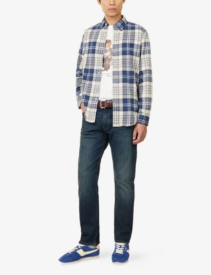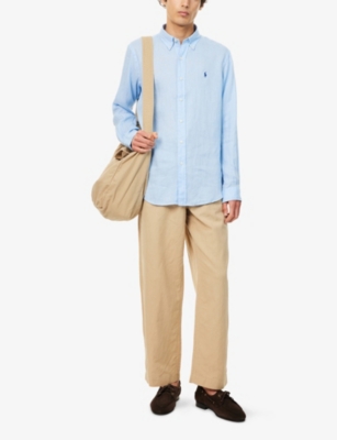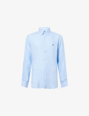 Long-sleeved logo-embroidered slim-fit stretch cotton-poplin shirt- Price:£135.00