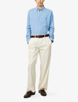 Long-sleeved logo-embroidered custom-fit stretch cotton-poplin shirt- Price:£135.00