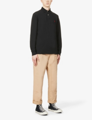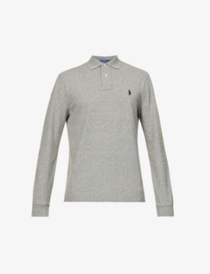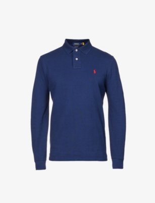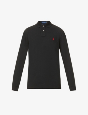 Long-sleeved logo-embroidered custom slim-fit cotton-piqué polo shirt- Price:£135.00