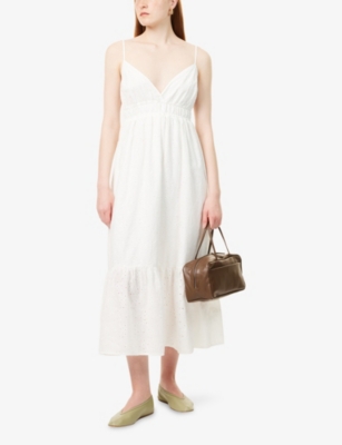 Embroidered Shoulder-Straps Cotton-Blend Midi Dress