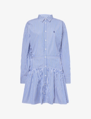 Striped Long-Sleeves Cotton-Poplin Midi Dress