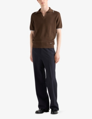 Logo-Embroidered Crochet Silk and Cotton Polo Shirt