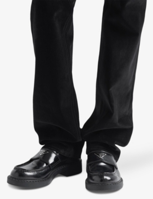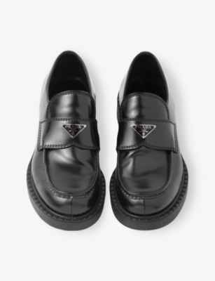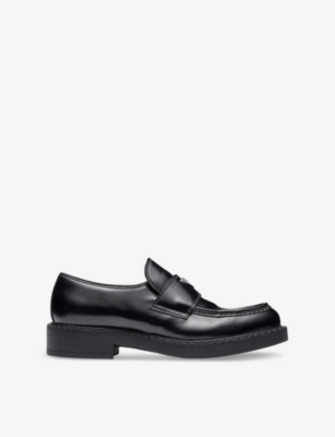 Triangle-logo brushed leather loafers