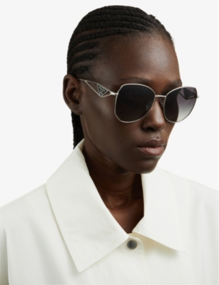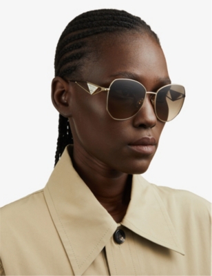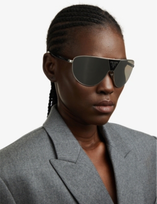 Aviators fans, rejoice. Our collection of Prada women's aviator sunglasses has given your favourite style the Miuccia treatment. Expect gradient lenses and delicate arms stamped with label's logo. The throwback look is perfect for teaming with your Prada sportswear, we reckon.