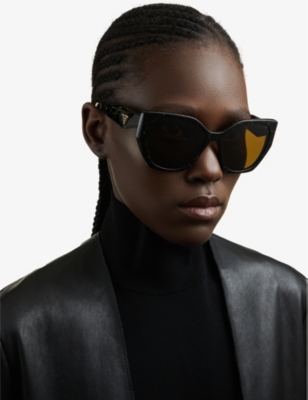 Prada cat-eye shades complement dressed-up looks and enhance dressed-down ones. They provide 100% UV protection and are certain to add a versatile spark of glamour to your accessory collection.