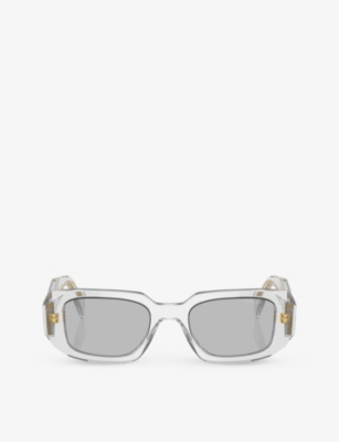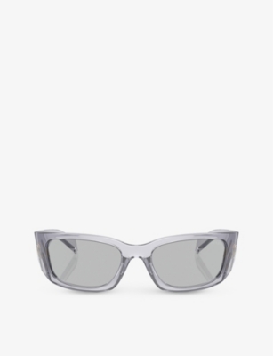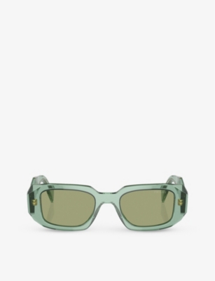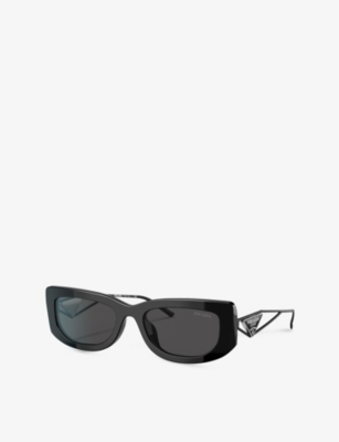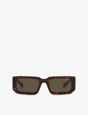 What's the spin on Prada's women's rectangle sunglasses? It's those modern twists on the 90s dimensions, like the animal print frames. Keep your eyewear sharp in these classic shapes or opt for oversized rectangle frames. Team with Prada women's sportswear to keep the retro flair.