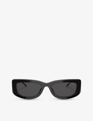 What's the spin on Prada's women's rectangle sunglasses? It's those modern twists on the 90s dimensions, like the animal print frames. Keep your eyewear sharp in these classic shapes or opt for oversized rectangle frames. Team with Prada women's sportswear to keep the retro flair.