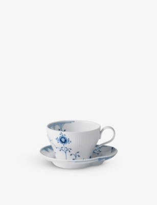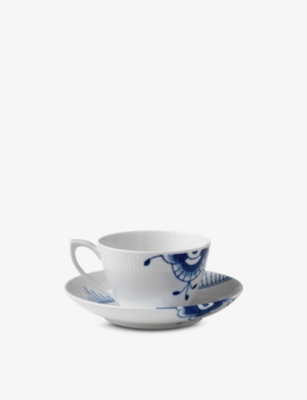 Blue Fluted Mega Cup floral-pattern porcelain teacup and saucer 280ml