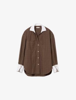 Pearl-Embroidered Collar Checked Cotton Flannel Shirt- Discount price:£188.30
