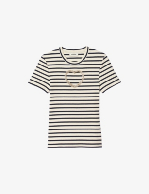 Striped Embellished-Heart Stretch-Cotton T-Shirt- Discount price:£139.30