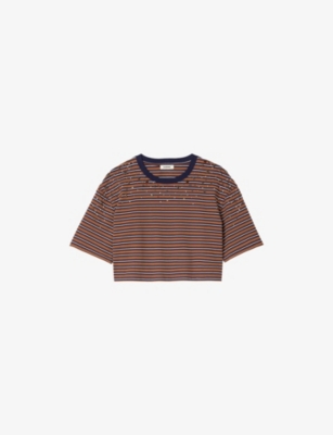 Rhinestone-Embellished Striped Boxy Cotton T-Shirt- Discount price:£107.40