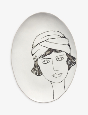 La Mère graphic-print oval stoneware plate 37.5cm x 27.5cm