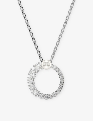 Mesmera rhodium-plated brass, crystal and zirconia pendant necklace