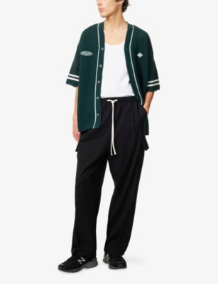 Chainstitch Embroidery Barrel-Leg Knitted Jogging Bottoms