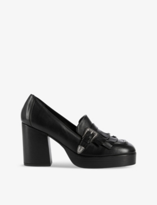 Buckle-embellished fringed heeled leather shoes- Discount price:£262.50