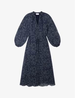 Flower outline and small polka-dot printed woven midi dress- Discount price:£74.50