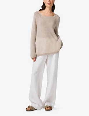 Mouline Slash-Neck Long-Sleeve Cotton And Linen-Blend Jumper- Discount price:£68.60