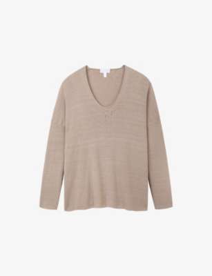 Voop-Neck Relaxed-Fit Linen-Blend Jumper- Discount price:£62.30