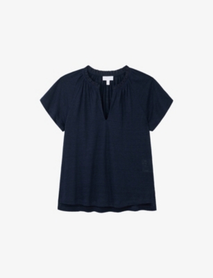 Frill-Trim Short-Sleeve Linen-Jersey Blouse- Discount price:£48.30