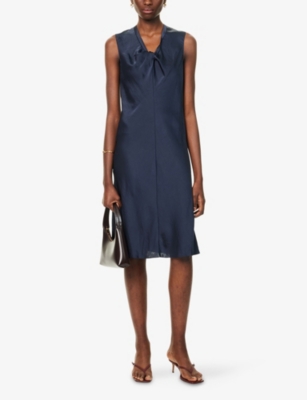 Pleated Sleeveless Stretch-Woven Midi Dress