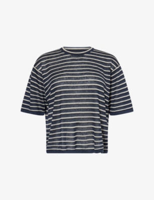 Striped Boyfriend Linen-Blend Knitted T-Shirt