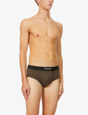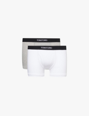 Whether you're a briefs man, prefer loose-fitting boxer shorts, or tend to opt for something in between, find your dream pair in our selection of Tom Ford underwear. You can't miss the signature logo referencing the label's namesake American founder - spot it on the elastic waistbands of every pair. Keep it classic with an option in solid colour and match this to a cotton undershirt, or liven things up with patterns such as camo and floral prints.