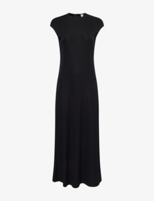 Round-Neck Long-Sleeves Woven Maxi Dress