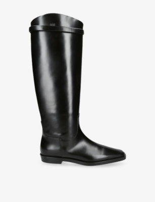 The Wide Shaft Croc-Effect Leather Knee-High Boots