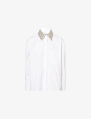 E.B. Crystal-Collar Cotton-Poplin Shirt
