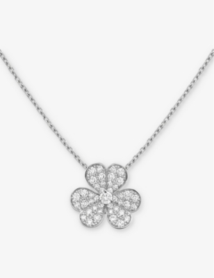 Frivole mini floral-pendant white-gold and 0.05ct round-cut diamond necklace- Price:£1,890.00