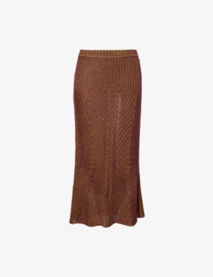Mary Ribbed Stretch-Silk Blend Midi Skirt