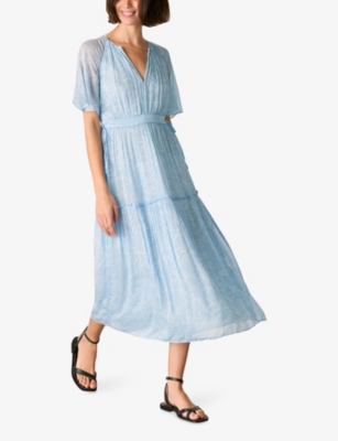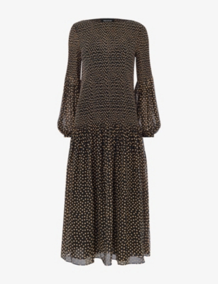 Scribble bouquet-pattern self-tie woven midi dress- Discount price:£65.00