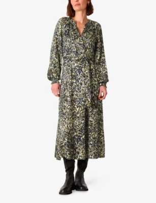 Round-Neck Stripe-Pattern Woven Midi Dress- Discount price:£75.00