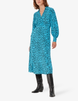 Serpent graphic-print long-sleeve woven midi dress- Discount price:£99.00