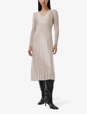 High-neck long-sleeve textured knit midi dress- Discount price:£55.00