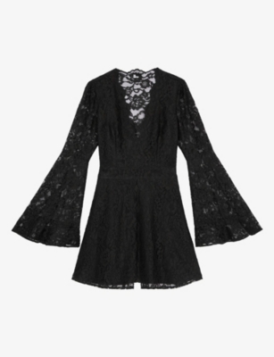 Lace-Embroidered Long-Sleeve Velvet Mini Dress- Discount price:£210.00