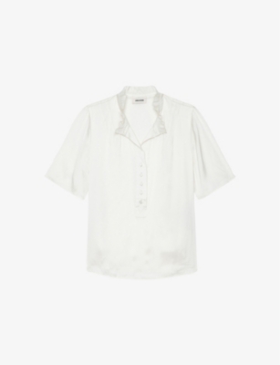 Choose bold outerwear from our selection of Zadig&Voltaire designer clothing for a statement-making aesthetic between seasons. Tap into a traditional feel with slouchy biker jackets with plenty of chunky zips and distressing, or keep things streamlined with structured blazers. Wear yours over a silky cami and team with some skinny black jeans. We also have versatile basics like loose-fit T-shirts crafted from pure cotton for softness and breathability. Block colours slot seamlessly into your daily outfits, while graphic logos help you stand out.