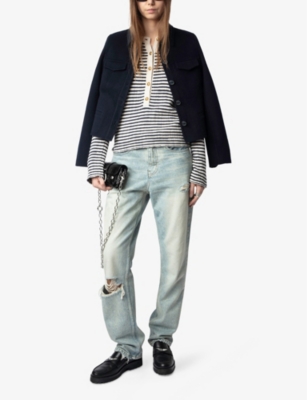 Our Zadig&Voltaire knitwear collection is full of plush outerwear and lightweight options for layering. Thierry Gillier founded the fashion label in 1990s Paris, bringing a new type of luxury to prêt-a-porter by pairing casual shapes and premium materials.