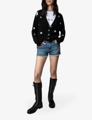Daffyz Star-Pointelle Long-Sleeve Cashmere Cardigan- Discount price:£282.00