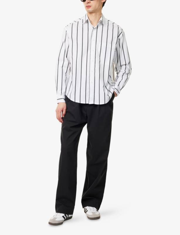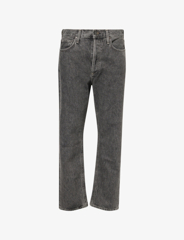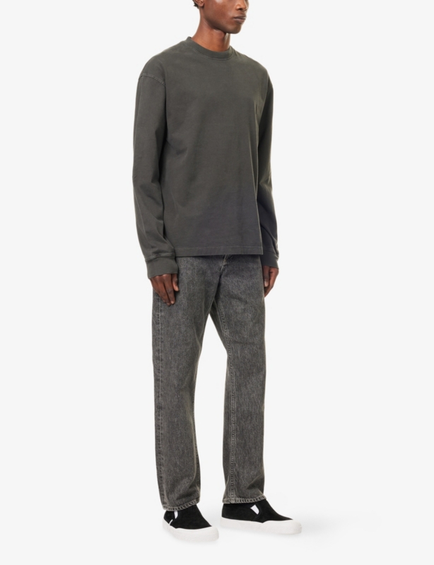 - Loose fit, mid-rise, straight leg, belt loops, classic five pockets, contrast stitching
