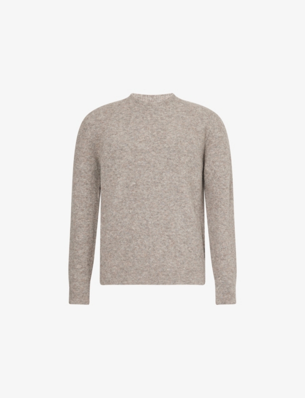 - Pointed collar, long sleeves, buttoned cuffs, curved hem