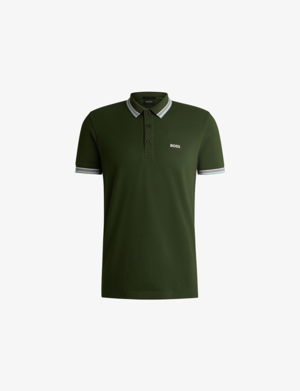 - Regular fit, collar, short sleeves, contrast trim, woven textured finish